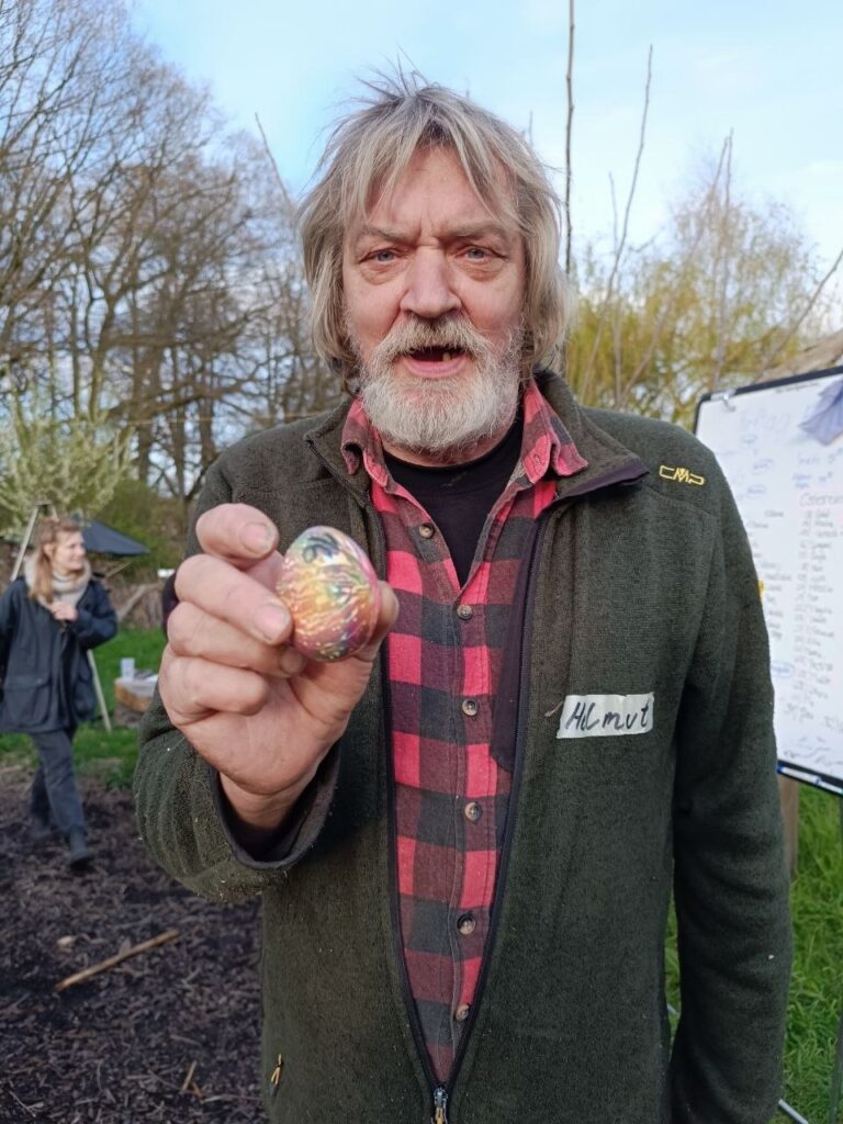 Mit rund 50 Menschen haben wir im und vorm Haus gebastelt und gewerkelt, hinterm Fahrradschuppen richtig durchsortiert und waren natürlich oben im Garten aktiv. Danke fürs Mitanpacken, fürs Schrauben, fürs Holzbusiness. Danke fürs Aufräumen, den Grünschnitt und die Großaktion im Beerenwunderparadis. Danke fürs Ernten und die Zubereitung aller Speisen. Danke fürs Ostereierbemalen und Mitsuchen. Und Danke für die tatkräftige Energie sowie die Gemütlichkeit. Es war mal wieder besonders!