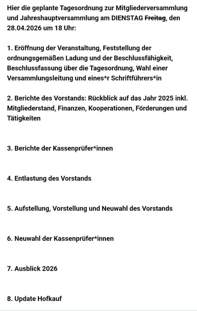 • Einen Rückblick auf das Hofkaufjahr 2025 samt aktuellem Finanzierungsstand